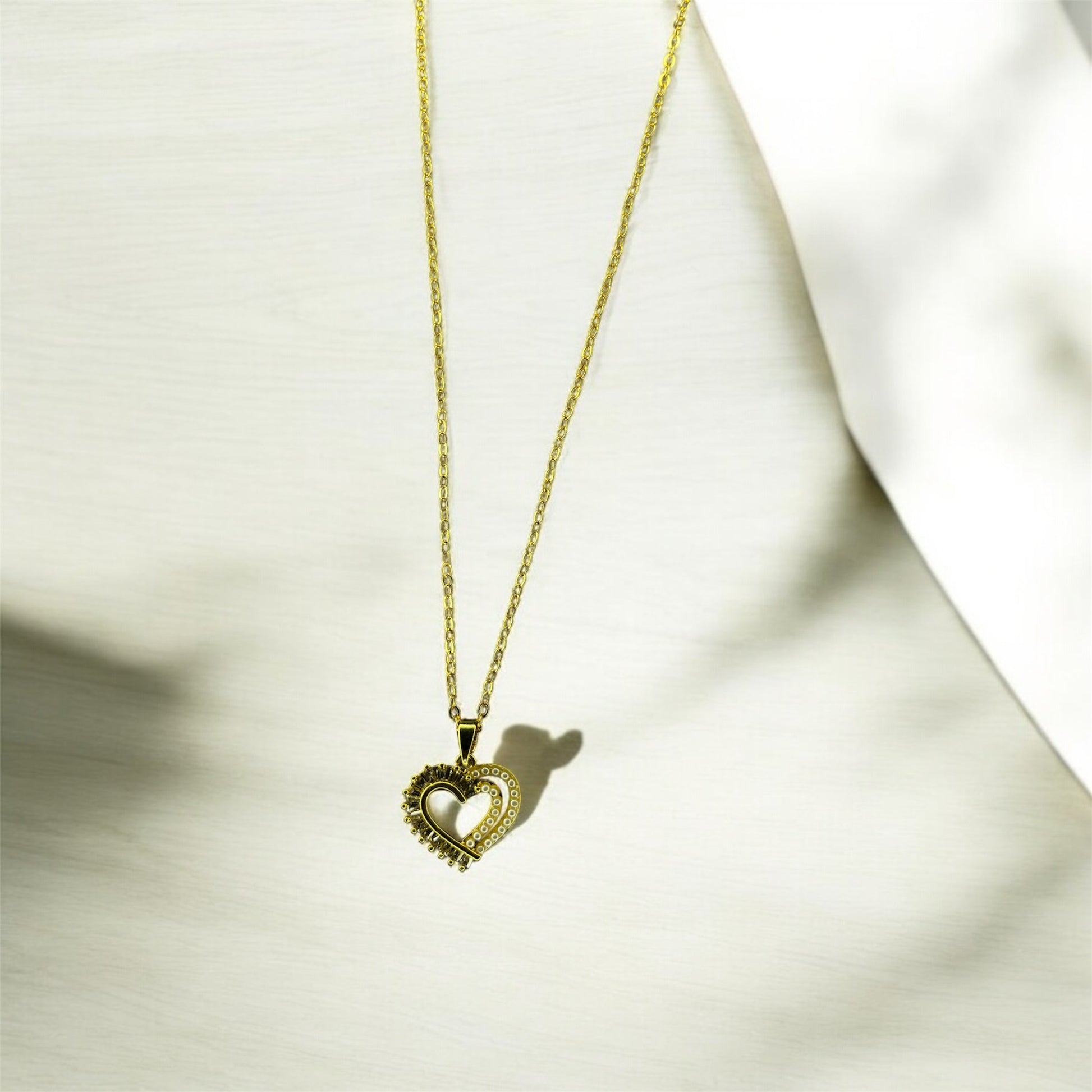 Shine bright with the Golden Heart Shaped Necklace, a perfect fusion of elegance and emotion. This radiant heart-shaped necklace features a dual-tone gold heart charm surrounded by detailing — symbolizing warmth, hope, and love. Whether you're styling it with a casual outfit or gifting it to someone special, this necklace adds timeless beauty and meaning to every look. A must-have necklace for women who love delicate yet statement-making jewelry.